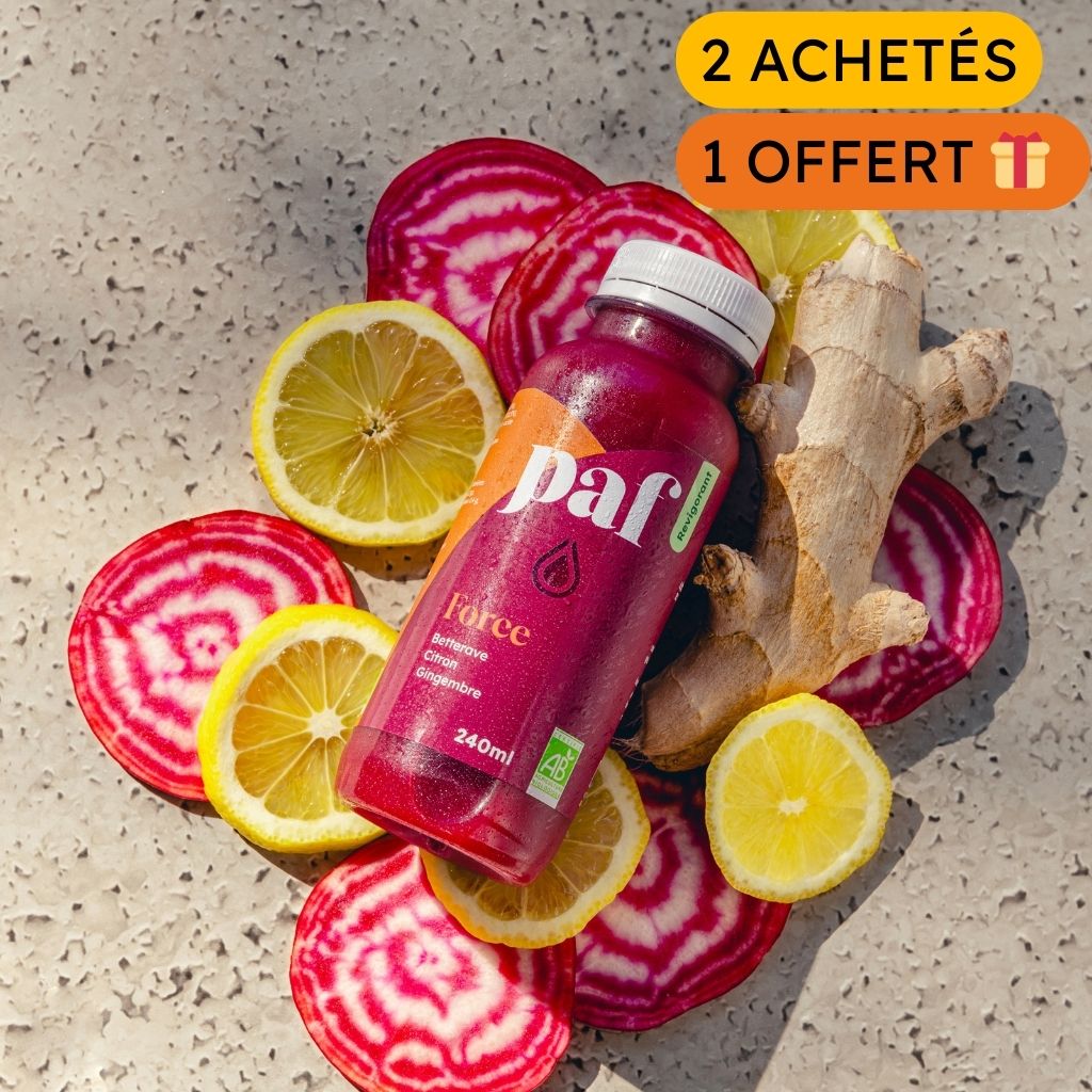 Avec un jus PAF vous couvrez l’ensemble des apports nutritionnels dont votre corps a besoin dans une journée.